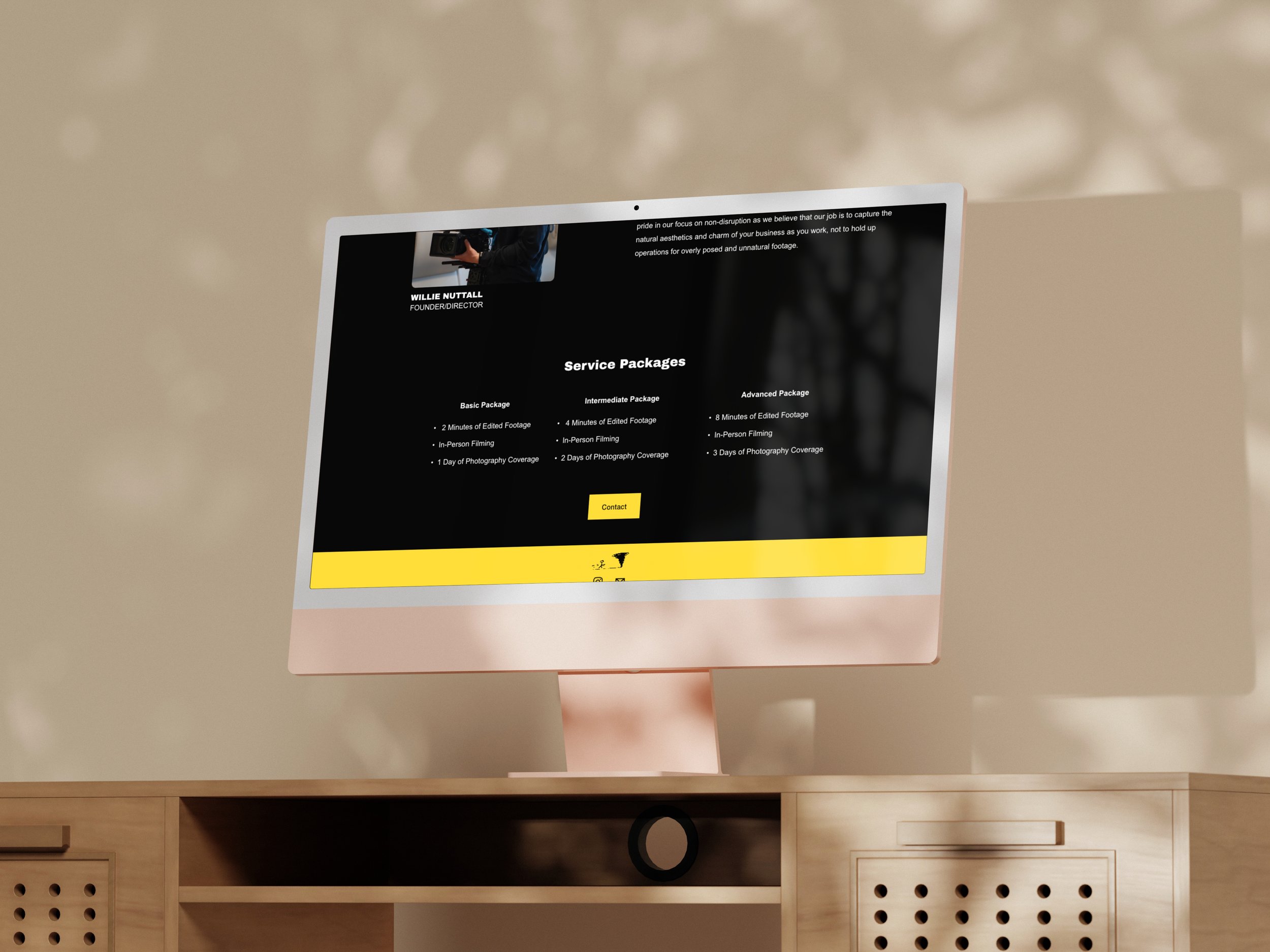 While the logo was already established, I developed the broader visual system for the brand by selecting the typography and color palette. The direction draws inspiration from classic film studio websites—clean, confident, and timeless—while still feeling modern and approachable.