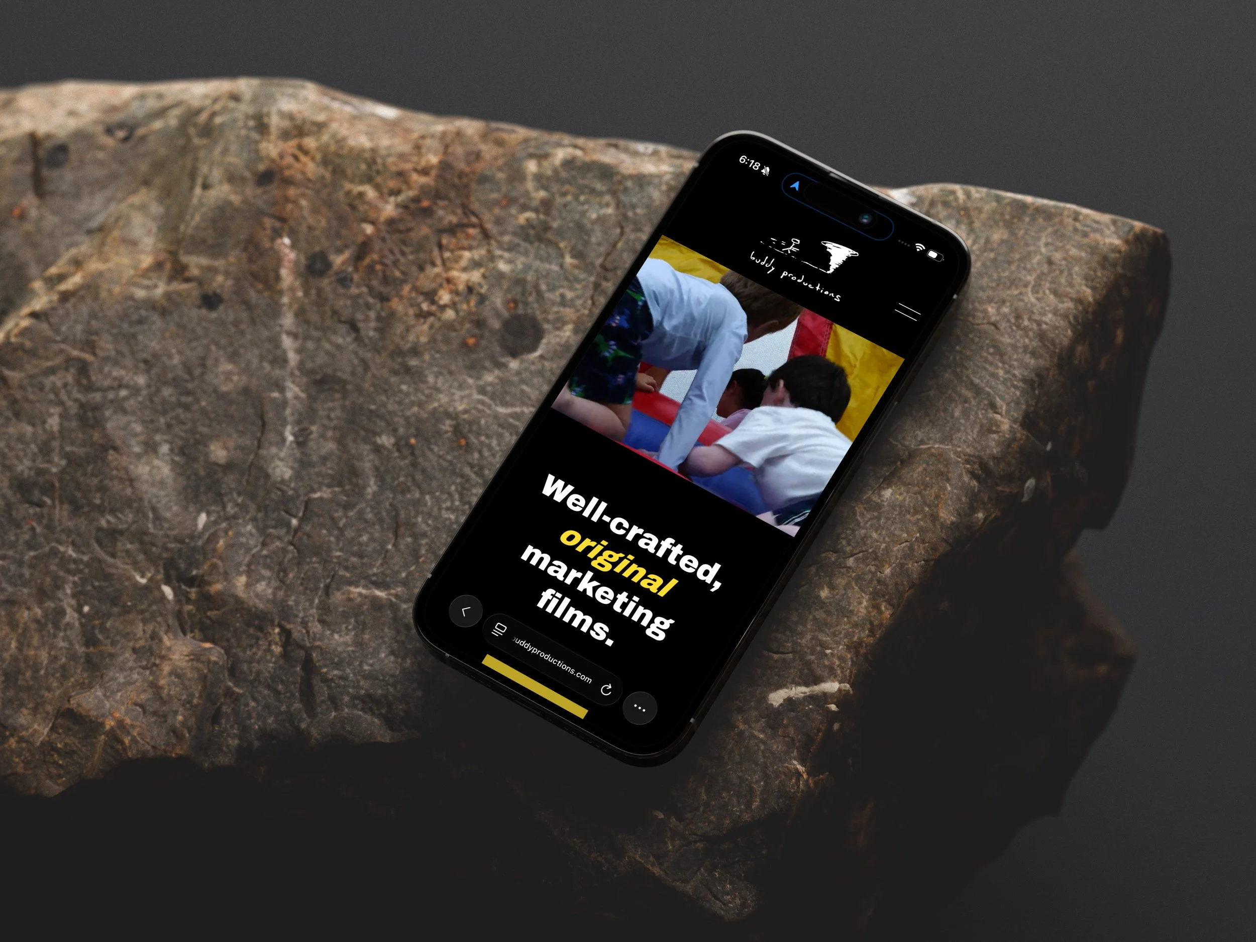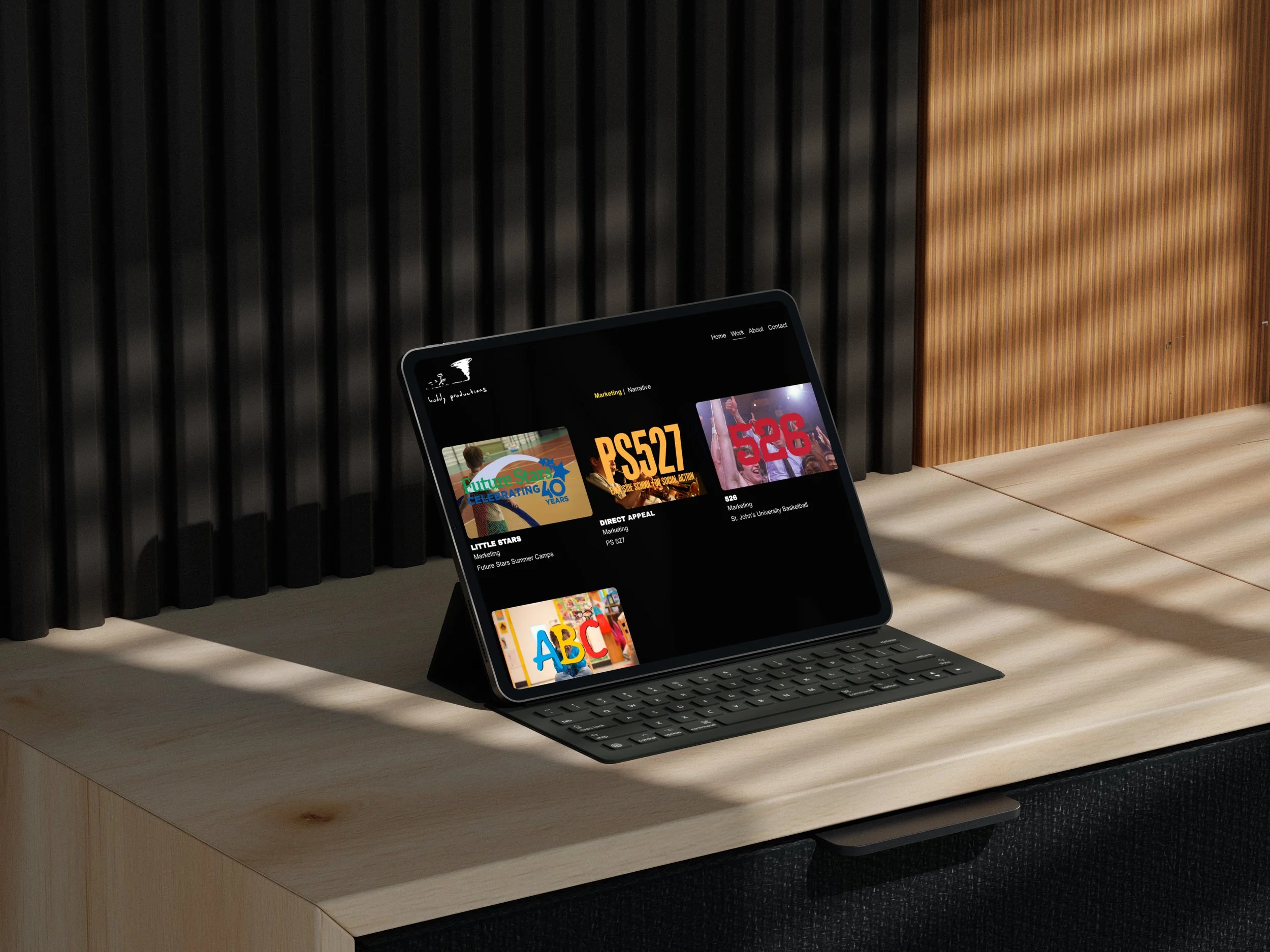 The final site balances simplicity with thoughtful details, creating a space where Buddy Productions’ storytelling can speak for itself.